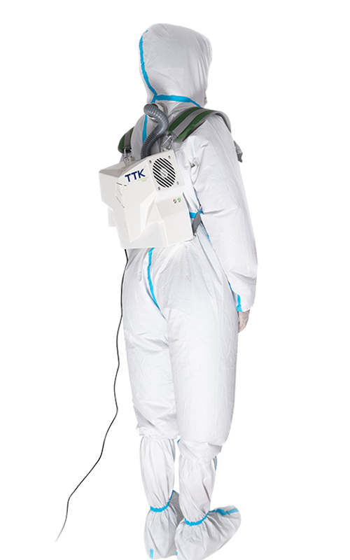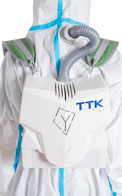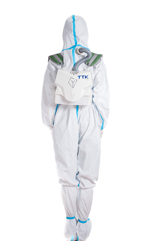 Chladiaca technológia elektrotermálnej výmeny, pretlaková vysokoúčinná filtrácia N95 izoluje vírusovú inváziu na golieri a manžete, zlepšuje úroveň ochranného odevu, pozitívny tlak v ochrannom odeve, cirkuláciu čerstvého vzduchu, bezpečný a pohodlný